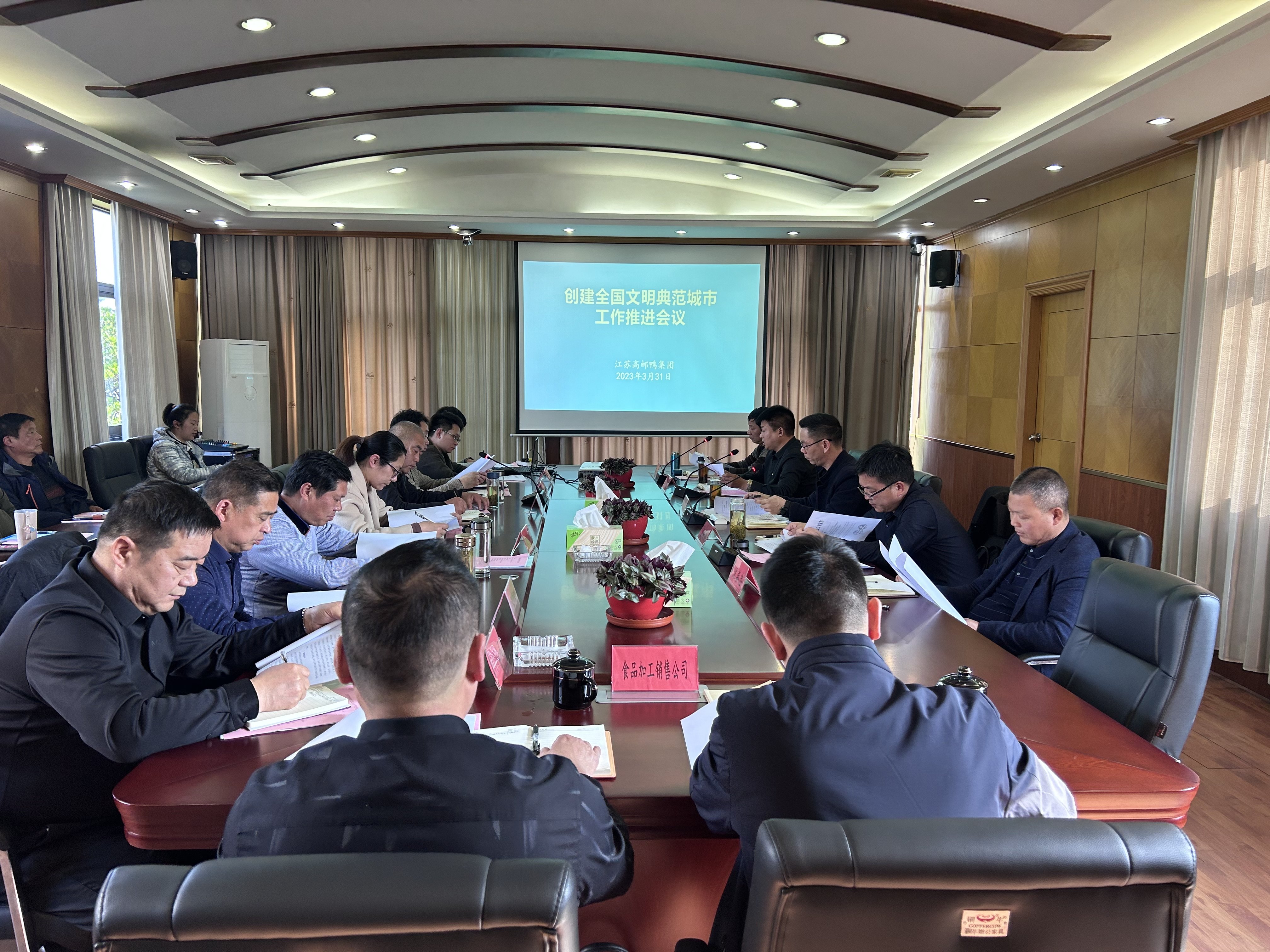 3月30日下午,高郵鴨集團(tuán)召開(kāi)創(chuàng)建全國(guó)文明典范城市工作推進(jìn)會(huì)。鴨集團(tuán)全體班子成員、各部室負(fù)責(zé)人及各企業(yè)相關(guān)負(fù)責(zé)人參加。會(huì)議由殷恒兵副總經(jīng)理主持。