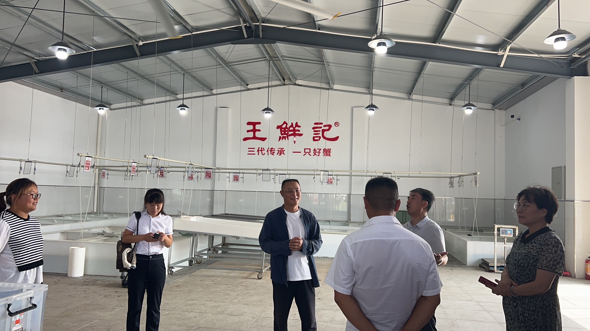 會(huì)上,王鮮記董事長(zhǎng)王俊介紹了高郵大閘蟹的自然生態(tài)、養(yǎng)殖技術(shù)、品質(zhì)把控以及市場(chǎng)趨勢(shì)等方面的知識(shí)和經(jīng)驗(yàn),強(qiáng)調(diào)了高郵大閘蟹的優(yōu)良品質(zhì)和獨(dú)特風(fēng)味,以及高郵湖大閘蟹在國(guó)內(nèi)市場(chǎng)的巨大潛力和競(jìng)爭(zhēng)優(yōu)勢(shì),并分享了王鮮記的創(chuàng)業(yè)過程和經(jīng)營(yíng)理念。隨后,所有人員共同參觀了王鮮記的養(yǎng)殖基地和加工廠。