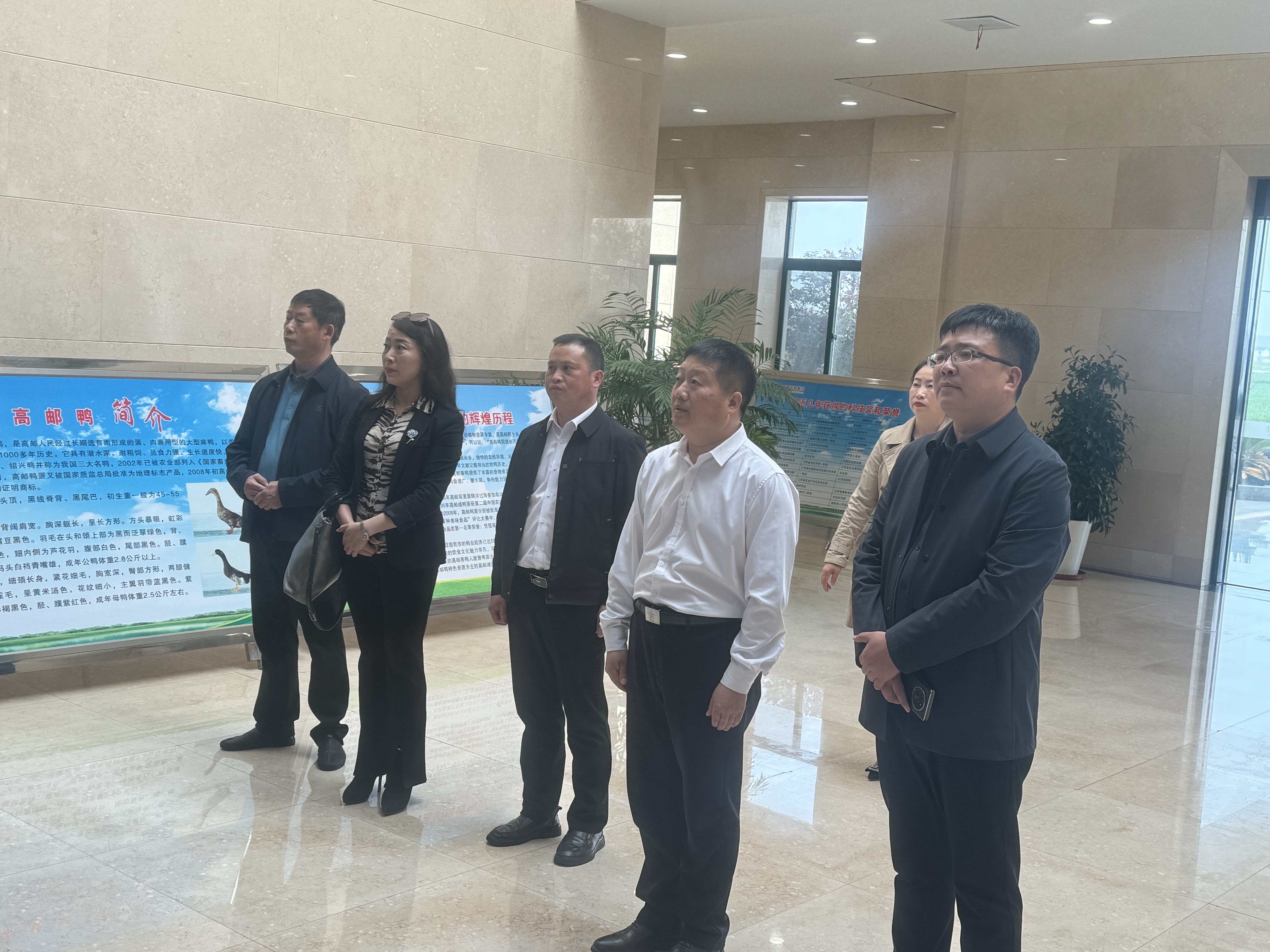 在高郵鴨集團(tuán)養(yǎng)殖基地,考察組一行參觀了高郵鴨文化展廳,詳細(xì)了解高郵鴨養(yǎng)殖技術(shù)、品種改良以及市場(chǎng)銷售等方面情況。在高郵鴨集團(tuán)食品加工基地,考察組一行參觀了蛋品加工流水線,對(duì)高郵鴨實(shí)體運(yùn)作與品牌打造給予高度評(píng)價(jià)。